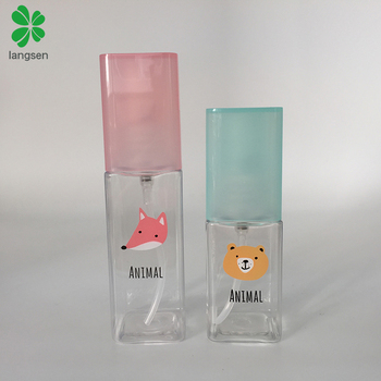 Sevimli plastik 35 ml kare ince sprey şişe karikatür baskı ile özel etiket, dolum seyahat kare parfüm sprey şişesi flakon